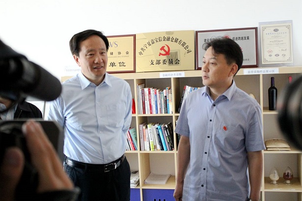 2016年(nian)5月18日上午,寧夏回族自治區黨(dang)委(wei)書記、人(ren)大常(chang)(chang)委(wei)會主任(ren)李(li)建(jian)華在(zai)自治區黨(dang)委(wei)常(chang)(chang)委(wei)、銀川市(shi)委(wei)書記徐廣(guang)國(guo)(guo),自治區黨(dang)委(wei)常(chang)(chang)委(wei)、常(chang)(chang)務副主席張超(chao)超(chao)的(de)陪同下(xia),來(lai)到嘉寶(bao)信金融(rong)倉儲有(you)限(xian)公司進行調研(yan)座談,了(le)解公司業(ye)務模式(shi)(shi)及創新成果。董事長俞曉鵬就(jiu)公司的(de)業(ye)務發(fa)展情況(kuang),全國(guo)(guo)首創的(de)葡萄酒原汁、奶(nai)牛活體及農業(ye)種植未來(lai)收益權等創新類質押種類的(de)成功(gong)案例做(zuo)了(le)詳細介紹。并(bing)對“嘉寶(bao)信模式(shi)(shi)”的(de)推廣(guang)情況(kuang)、取得的(de)進展做(zuo)了(le)匯報。李(li)建(jian)華書記對嘉寶(bao)信在(zai)解決中小企(qi)業(ye)以及三農融(rong)資難的(de)問題上所做(zuo)的(de)創新給(gei)予了(le)充分(fen)肯定,并(bing)對企(qi)業(ye)下(xia)一步(bu)的(de)發(fa)展提出了(le)希望(wang)和(he)要(yao)求。