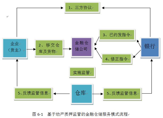 5.倉儲公司根據監管情況,定期向金融機構和融資企業提出反饋報告。如果質押品價值低于合同約定,則通知融資企業及時補貨;如果融資企業無法還貸,則倉儲公司負責變現保管物,維護約定方的利益。