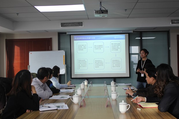 公司領導向考察團介紹(shao)存(cun)貨質押有關情(qing)況