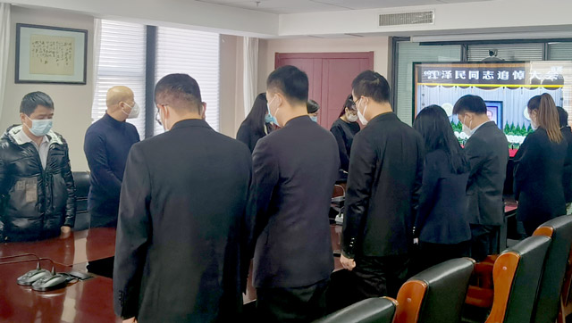 在我黨我軍我國各(ge)族(zu)人民(min)(min)公(gong)認的(de)(de)享有崇(chong)高(gao)威(wei)望的(de)(de)卓(zhuo)越領(ling)導人,偉(wei)大的(de)(de)馬克思主義(yi)者(zhe),偉(wei)大的(de)(de)無產階級革命家(jia)、政(zheng)治(zhi)家(jia)、軍事家(jia)、外交家(jia),久經考驗的(de)(de)共產主義(yi)戰士,中(zhong)國特色社會主義(yi)偉(wei)大事業的(de)(de)杰出(chu)領(ling)導者(zhe),黨的(de)(de)第三(san)代(dai)中(zhong)央領(ling)導集(ji)體的(de)(de)核心,“三(san)個代(dai)表(biao)”重要思想(xiang)的(de)(de)主要創立者(zhe)江澤民(min)(min)同(tong)志逝世后,為表(biao)達(da)黨支部(bu)眾(zhong)黨員(yuan)及員(yuan)工(gong)對江澤民(min)(min)同(tong)志的(de)(de)無比(bi)崇(chong)敬和深切(qie)悼念之情,在2022年(nian)12月6日上午10點,伴隨著警笛(di)聲(sheng)響(xiang)起, 眾(zhong)人起身默哀(ai)悼念。